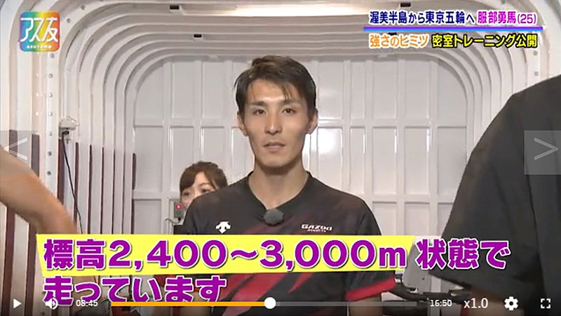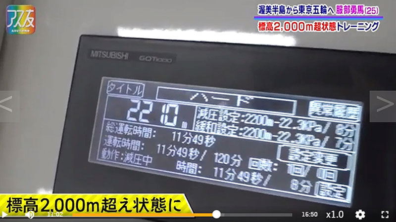 2020年東京五輪代表に内定した服部勇馬が所属するトヨタ自動車陸上部には、日本気圧バルク工業株式会社製 低圧低酸素ルームが設置されています。 服部選手が毎日トレーニングに励んでいます。