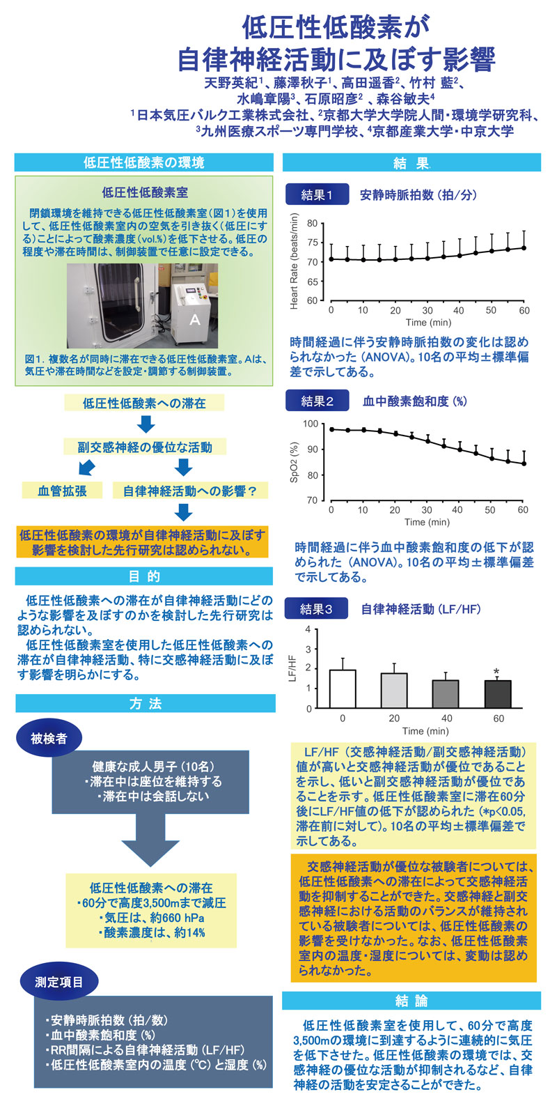 日本気圧バルク工業株式会社は、京都大学、中京大学などと共同研究した成果を日本体力医学会大会で発表しています。